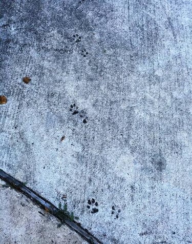 My driveway has a lot of scars, all of which I can recall what caused them. Some of them are old, others are somewhat recent. My favorite is when I had the additional concrete poured to accommodate the side of the garage, Zora ran across, leaving her trail permanently imprinted on the driveway. At first, I wanted to wipe them off so the new concrete would be smooth, but I decided to leave them as a tribute to my garage dog. I even wrote her name near where she ran across, but only the Z is visible today.