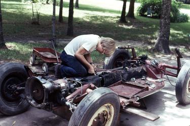 My brother began working on an unfinished dune buggy. It had the pan and transmission from an early ‘60s VW Beetle. He had cut out 18 inches behind the driver’s seat, and it stayed cut in half for a few years. He gave me the project when I was 14 years old.