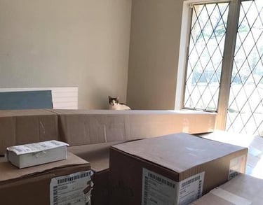 Fast forward a few years, and we were flooded during a hurricane. The water inside the house was waist-deep, and we knew we had to get out to safety. Jennifer and I got our john boat out onto the driveway and tied it to the fence. We needed to get our pets in the boat. We had lost Zora a few weeks earlier, and Ginger had just drowned. Jennifer and I got Bella, our black lab, into the boat, which was no easy feat since the water on the driveway was chest-deep. The cats were on the back of the couch, two of them still dry. Vlad had jumped into the water when he saw Bella in the house earlier. Allison got Vlad and wrapped him in a towel. The only way we could think of to get the cats into the boat was to put them into pillowcases. You have not lived until you have carried a cat in a pillowcase through chest-deep water! We lived in six different places before we could move back into our house. Some for overnight, others for a few hours, and others for weeks and months. All three cats and Bella were troopers. They adapted well but knew that things were not right. When we did move back into our house, it was still under construction. As the house became our home again, all the cats enjoyed exploring it after the workers left for the day. Vlad made the process much harder than Jasper and Madeline. He is still jumpy today when someone other than family walks into the house.