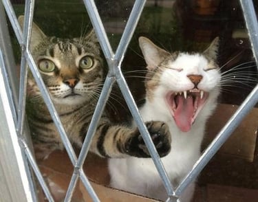 We arrived at the home where the pet adoption person had arranged for the foster parent to meet us. Madeline was a playful kitten, and we all fell in love with her. She came home with us, and we had to take her to the adoption event a few days later to finalize the adoption. One of the workers took Madeline back to give her the last of her shots. I thought that was interesting since the cats we have adopted got their shots in front of us. I mentioned that, and the lady said, “Madeline is sort of a drama queen. She will yell when given a shot, and they did not want the people who were looking at the dogs and cats to hear it.” Jasper had a tough time accepting Madeline, but they were soon good friends. Madeline was indeed a drama queen when Jasper wanted to play, even though it wasn't her idea; we all heard about it.
